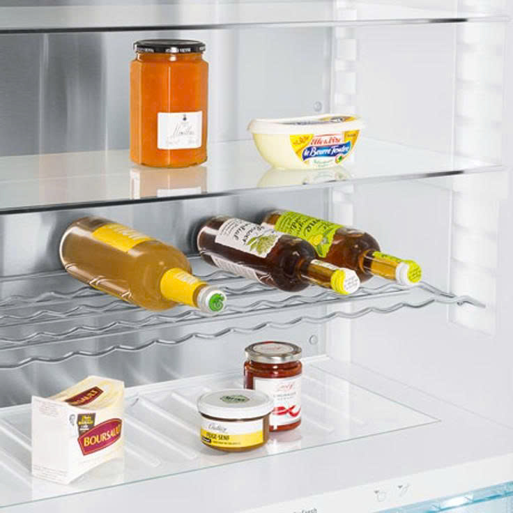 Một chi tiết tiện dụng của thiết bị là kệ để chai có thể điều chỉnh độ cao. Kệ kính tích hợp có thể được sử dụng để cất giữ cốc hoặc bát.