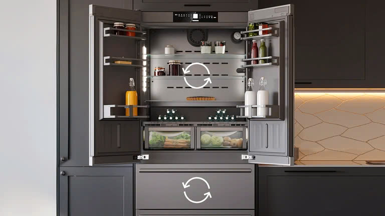 DuoCooling trong tủ lạnh cao cấp Liebherr sử dụng hai dàn lạnh độc lập, đảm bảo không có sự trao đổi không khí giữa ngăn lạnh và ngăn đông. Kết quả là thực phẩm không bị khô và không bị lẫn mùi, giữ nguyên độ tươi ngon và hương vị. Điều này giúp giảm lãng phí thực phẩm, tiết kiệm chi phí mua sắm và tăng cường trải nghiệm sử dụng.