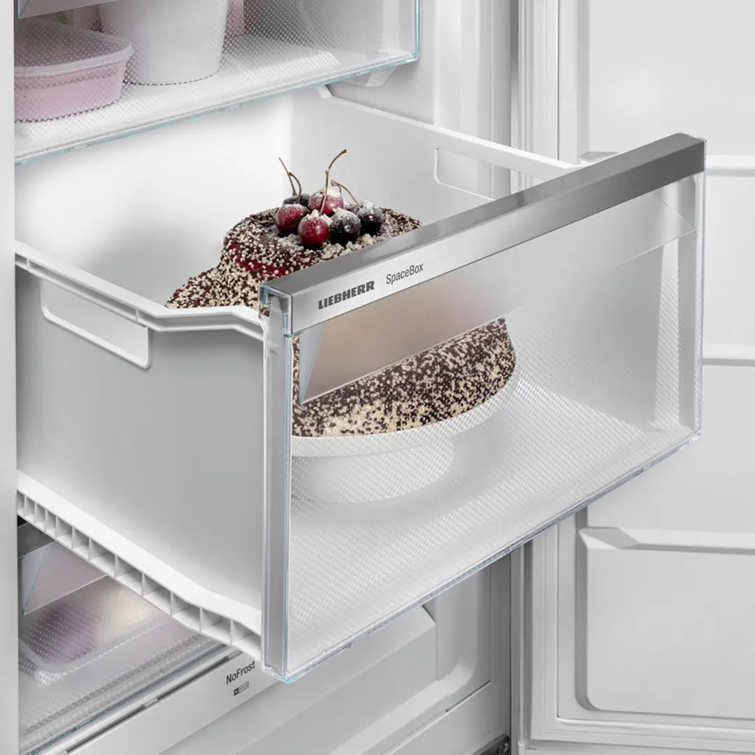 Bạn cũng có thể lưu trữ “những thứ lớn lao” trong Liebherr của mình: vì đơn giản là bạn cần nhiều không gian hơn cho gà tây XL hoặc bánh kem nhiều tầng. Liebherr của bạn có SpaceBox cho những trường hợp như vậy: Với chiều cao rộng 250 mm, nó mang lại nhiều không gian bổ sung, ngay cả đối với các mặt hàng đông lạnh cỡ lớn. Và điều này giúp bạn lưu trữ linh hoạt.
