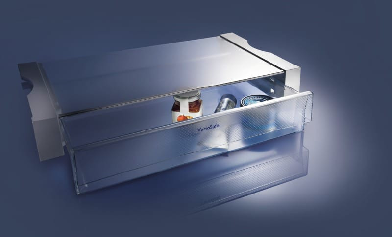Bạn muốn một nơi được sắp xếp rõ ràng cho những đồ ăn nhỏ như hũ sữa chua, lọ mứt hay ống? Tủ lạnh Liebherr cung cấp giải pháp với VarioSafe. Nó không chỉ tạo ra trật tự mà còn có khả năng thích ứng cao. VarioSafe có thể điều chỉnh độ cao theo hai giai đoạn vào tủ lạnh ở nơi phù hợp với bạn nhất.