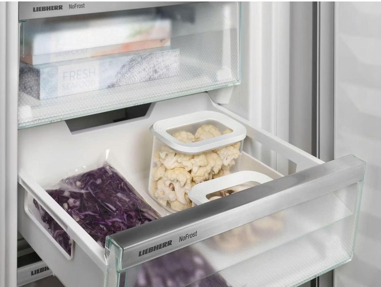 Bạn có muốn một nơi được sắp xếp rõ ràng cho các loại thực phẩm nhỏ như hộp sữa chua, lọ mứt hoặc ống không? Liebherr của bạn cung cấp điều này với VarioSafe. Nó không chỉ tạo ra sự ngăn nắp mà còn có khả năng thích ứng cao. Chỉ cần đặt VarioSafe có thể điều chỉnh độ cao hai giai đoạn vào tủ lạnh ở nơi phù hợp nhất với bạn.