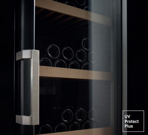 Bảo vệ ba lớp. Đối với việc lưu trữ lâu dài, tủ bảo quản rượu vang có cửa kính cung cấp khả năng bảo vệ chưa từng có khỏi bức xạ UV: ba lớp bảo vệ bao gồm kính màu và hai lớp kim loại lắng đọng chân không. Được gọi là lớp phủ Low-E, lớp phủ này cung cấp khả năng bảo vệ hiệu quả cao cho rượu vang của bạn khỏi bức xạ mặt trời có hại.