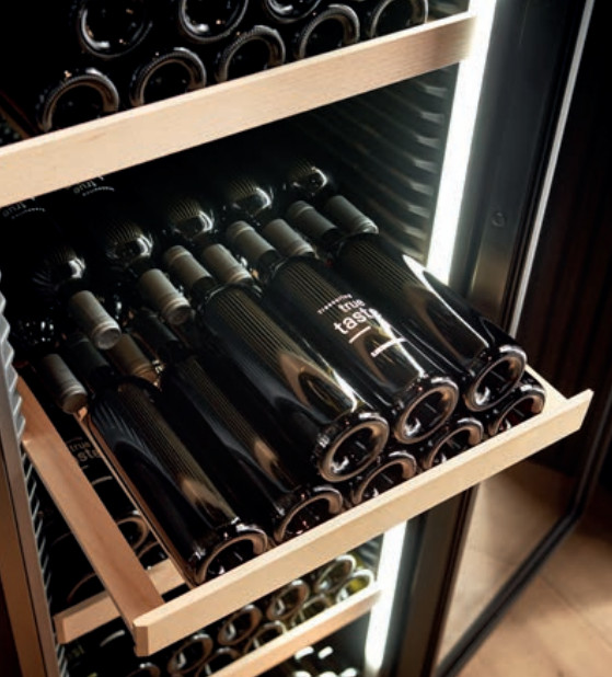 Công suất tối đa. Tủ bảo quản rượu Liebherr cũng giúp việc tổ chức bộ sưu tập rượu ngày càng phát triển dễ dàng hơn. Để tận dụng tối đa sức chứa của nó, nội thất đã được thiết kế sao cho các chai rượu vang của bạn có thể được xếp chồng lên nhau trên kệ gỗ. Điều này có nghĩa là vẫn còn rất nhiều chỗ cho lượng rượu dự trữ ngày càng tăng. Vì thế cứ thoải mái sưu tầm nhé.