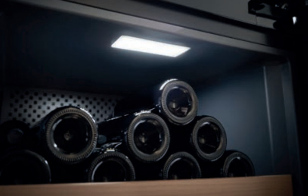 Loại rượu yêu thích của bạn phải luôn dễ tìm. Đó là lý do tại sao các mẫu cửa kiên cố của chúng tôi có hệ thống đèn trần LED chiếu sáng toàn bộ nội thất và thể hiện bộ sưu tập rượu vang của bạn một cách tốt nhất. Đèn LED được bố trí ngay phía trước để đảm bảo không có chai nào ở trong bóng râm. Và trên các thiết bị có cửa kính, hệ thống chiếu sáng trưng bày của chúng tôi làm cho rượu vang của bạn trở nên bắt mắt ngay cả khi cửa đóng.