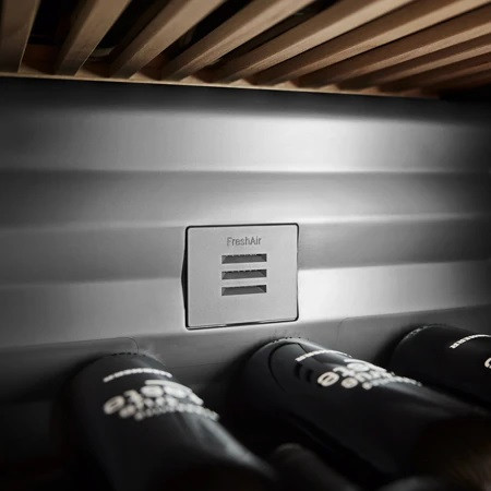 Mùi môi trường có thể ảnh hưởng đến rượu được bảo quản trong thời gian dài hơn. Trong tủ lạnh đựng rượu, chất lượng không khí hoàn hảo được đảm bảo thông qua bộ lọc than hoạt tính FreshAir có thể thay thế dễ dàng.