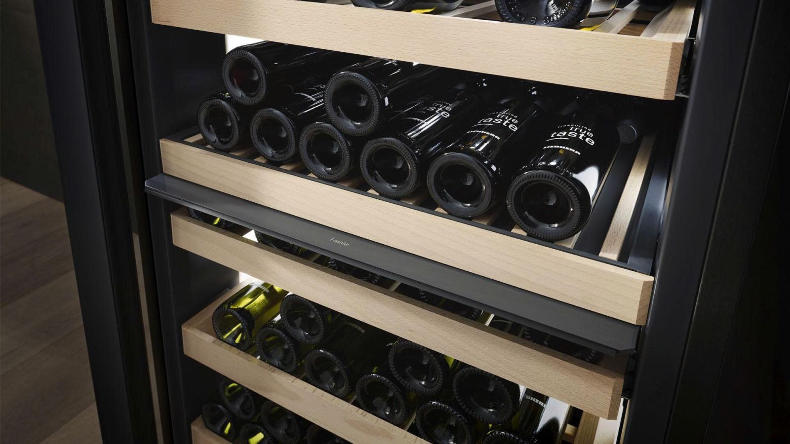 Liebherr WSbsi 5252 bằng thép đen với 2 vùng nhiệt độ điều chỉnh riêng biệt cho nhiều loại rượu vang khác nhau các kệ có thể điều chỉnh độ cao, một trong số đó phù hợp để cất giữ các chai đã mở ở một góc. Việc mở tủ dễ dàng nhờ tay cầm có hệ thống cần gạt. Tủ được trang bị khóa cửa điện tử, bộ lọc FreshAir và hộp SmartDeviceBox tích hợp để thông báo trên điện thoại nếu cửa tủ bị mở. Sức chứa: 155 chai (dòng Bordeaux).